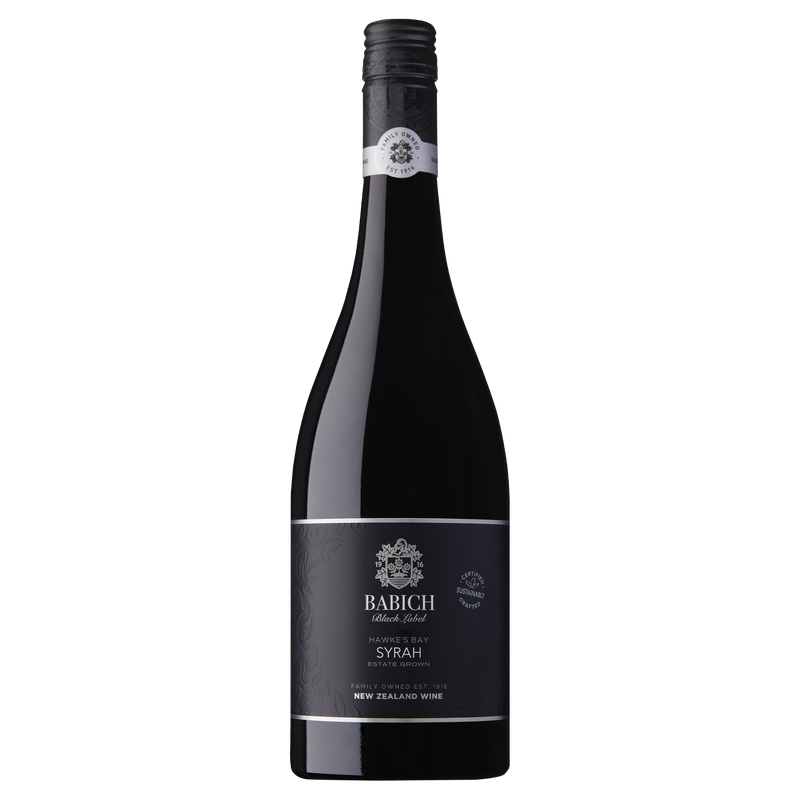 The Babich Black Label range is crafted specifically to complement food. This deep coloured Syrah is produced from a special selection of grapes grown in the Bridge Pa Triangle region of Hawke's Bay. Vibrant and lifted with plum, black pepper, violets and dried herbs. French oak contributes subtle vanilla and cedar aromas. Supple and smooth with fine soft tannins and medium weight. Cherry, plum and red brambly notes join with a touch of cocoa and nutmeg. Bright, juicy and lingering finish.